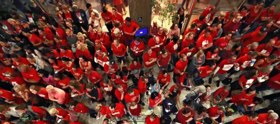 Arizona educators crowd the lobby of the state Senate to demand better school funding (AP Photo/Matt York)