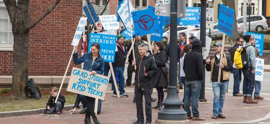 In the first hours of last month’s five-day strike by support employees at the Rhode Island School of Design (RISD) it was astonishingly clear that the 44 NEA-affiliated shop technicians were not alone on the picket line.