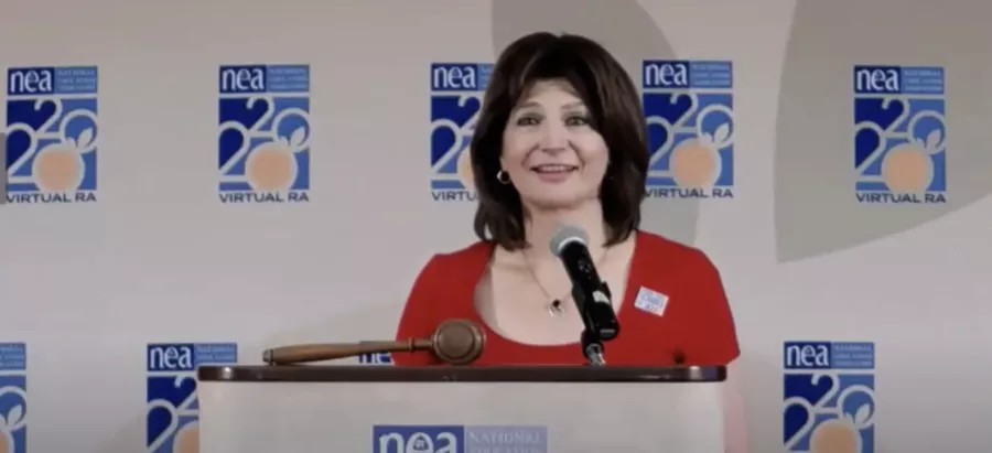 "We have masks, social distancing, and disinfectant," NEA President Lily Eskelsen García said, referring to the podium at NEA headquarters she would be sharing only with NEA officers. "Because nothing, absolutely nothing, not even a global pandemic, is going to stop the National Education Association from doing its work."