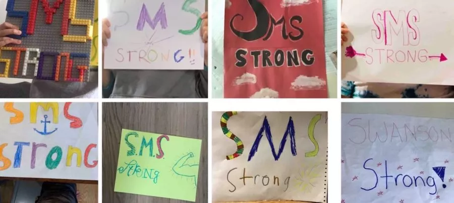 Students created a sign that said: “SMS (Swanson Middle School) Strong,” and were asked to put it in a window that faces the street. The goal was to see how many “SMS Strong” signs they could spot.