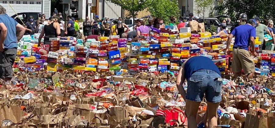Word spread quickly. A call for 85 food kits grew to an outpouring of what’s estimated to be 30,000 bags.