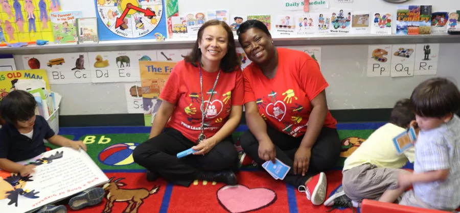 They guide their students at Twin Lakes Elementary School in Tampa, Fla., with a soft touch. Teacher Gloria Morales and paraeducator Monica Anderson take turns leading their preK class in song:
