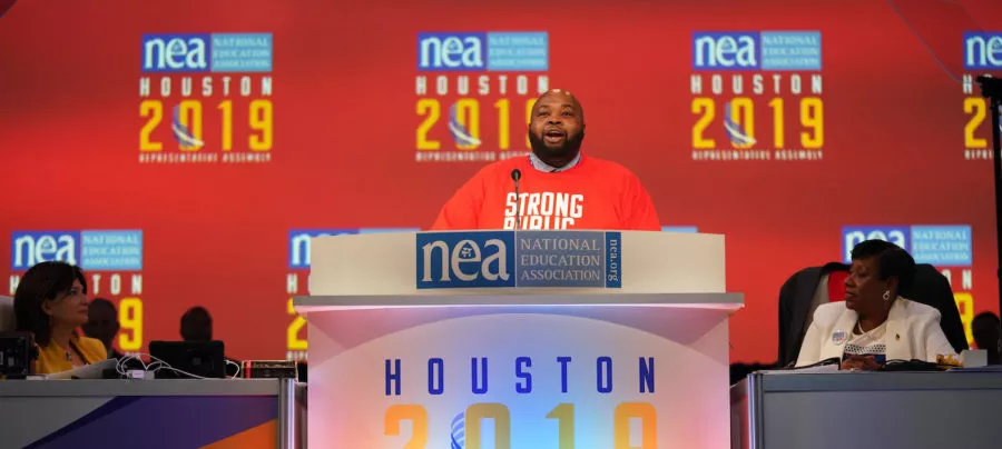 Rodney Robinson, the 2019 National Teacher of the Year, brought the 7,000 NEA Representative Assembly delegates to their feet on Saturday with an impassioned plea for diversity, increased opportunity for our most vulnerable students, and a day of reckoning for politicians who refuse to fully-fund public education.