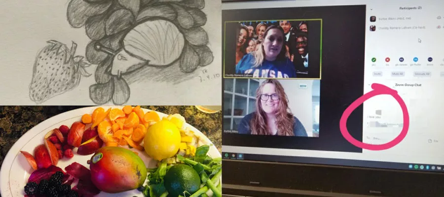 “Snail,” created at home by a Topeka eighth grade; an edible color wheel by a Topeka sixth grader; a student signs off from an online art club with an “I love you” to art teachers Chastity Romero Latham and Barbie Atkins.