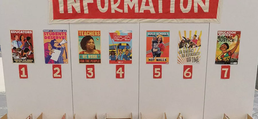 While attending the annual meeting, this year in Houston, Tex., hundreds of NEA members worked with artists from the Milwaukee-based Art Build Workers to create and contribute to graphic depictions of collective action. Together, they turned massive parachutes into protest banners saying, “Ready to Strike” and “Red for Ed,” or painted patches with slogans like, “Teachers—We Work for The People” and “Public Schools—The Heart of Our Community,” to take back to their classrooms and communities.