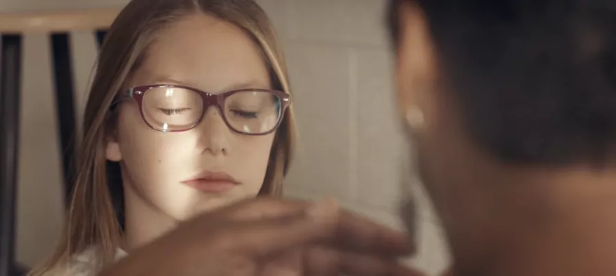 West Virginia teacher Danielle Harris helps a student focus on breathing.