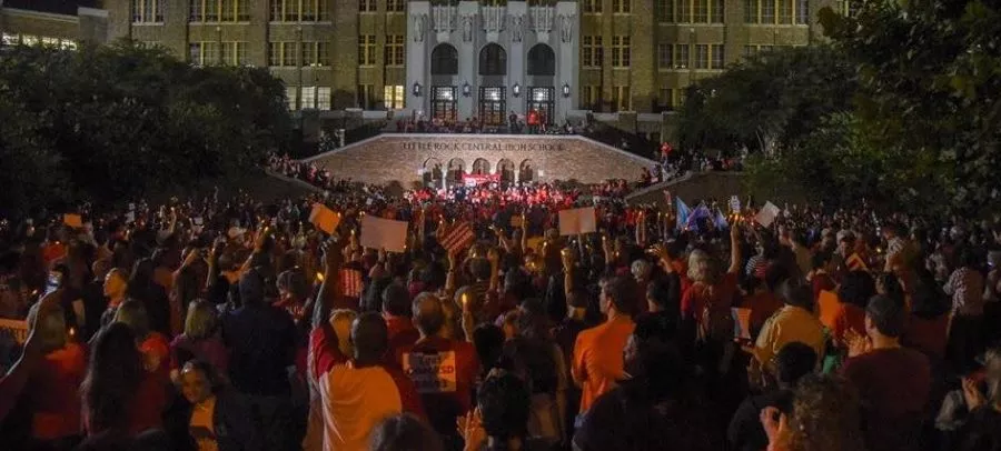 Thousands of Arkansas educators, students and community members held candles and sang in front of historic Little Rock Central High School last week, protesting a plan by the governor-appointed State Board of Education that would re-segregate the city’s students.