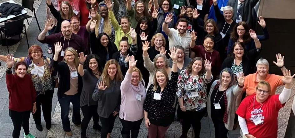 Nineteen local Association teams from the 2020 ESPs Supporting Our Own Through Mentoring training, facilitated by Judy Near, Kathy Ellis, Quanyet Gibbs, and Olive Giles.