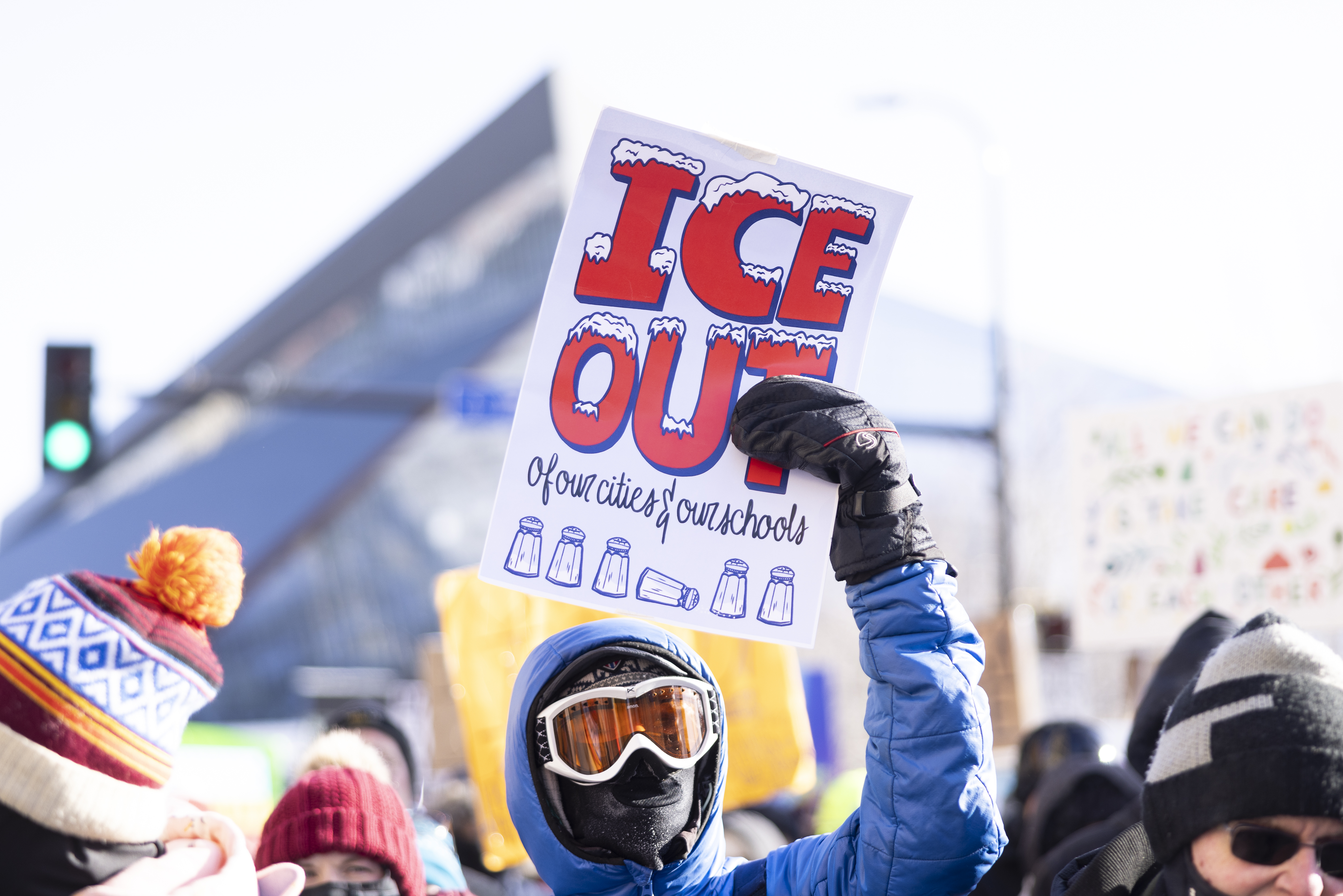 Later, these teachers, counselors, administrators, and educational assistants would join an estimated 50,000 marchers in the streets of Minneapolis, braving the coldest day of the year to demand that ICE leave Minnesota and stop terrorizing their neighbors. “My students are terrified...They're trying to learn and instead they're wondering, 'Is it safe to be here? Am I going to be kidnapped? Am I going to be targeted for the color of my skin? Am I going to be coming to campus someday and end up in detention in a country I've never been to?' Nobody can learn under conditions like that," said a local faculty member, a sign in hand. "It's not right. None of this is right."